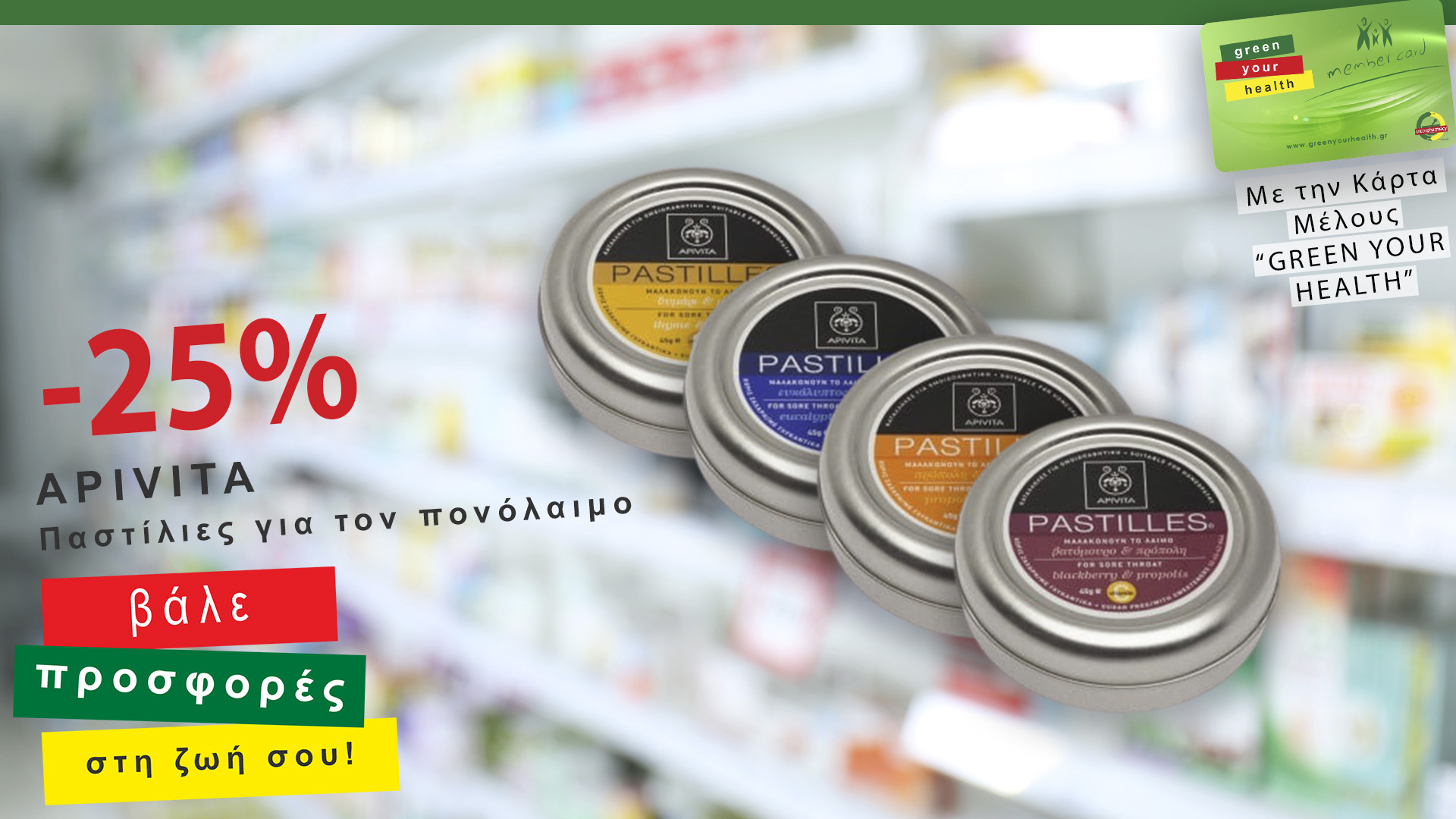 Απόκτησε τη νέα Κάρτα Μέλους GREEN YOUR HEALTH σε ένα από τα φαρμακεία του δικτύου Green Pharmacy Νότιας Πελοποννήσου και επωφελήσου από τα προνόμια που σου χαρίζει: