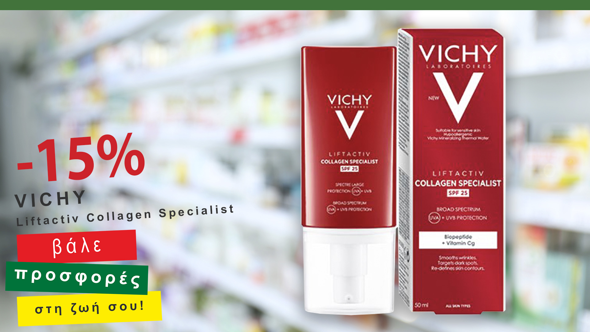 Προσφορά -15% στη Vichy Liftactiv Collagen Specialist SPF25 από 16 Μαρτίου έως 5 Απριλίου 2020 στα φαρμακεία του δικτύου Green Pharmacy Νότιας Πελοποννήσου.